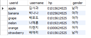 create view vw_member as select userid, username, hp, gender from member;