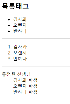 -<ul> : 순서가 없는 목록 태그, 블록태그