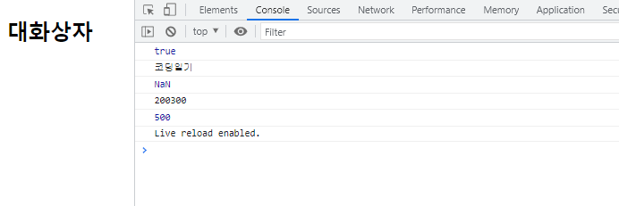 //console.log(num1+num2); //문자열로 인식 -> 더하기면 연결된다.